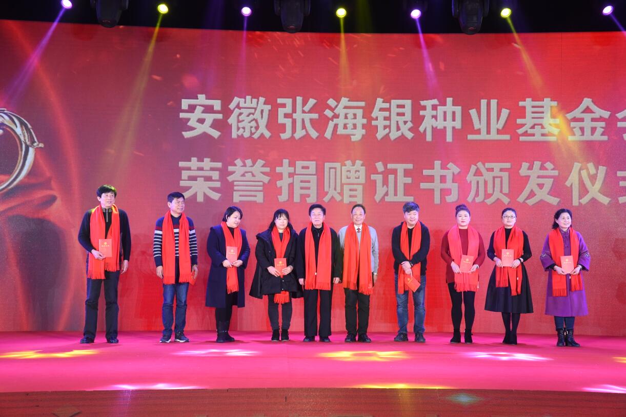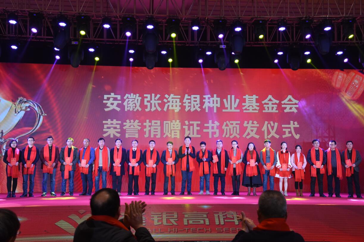 會(huì)上,對(duì)荃銀高科總部及子公司2017年度先進(jìn)集體、先進(jìn)個(gè)人進(jìn)行了表彰獎(jiǎng)勵(lì);進(jìn)行了安徽張海銀種業(yè)基金會(huì)頒發(fā)捐贈(zèng)證書(shū)儀式。