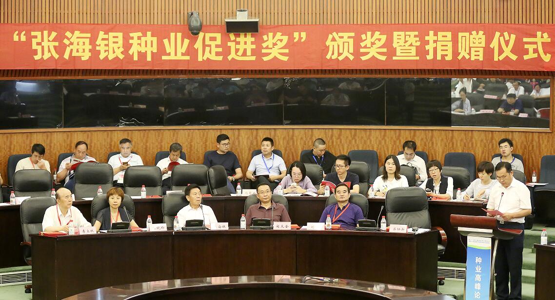 9月16日下午,基金會(huì)2018年“張海銀種業(yè)促進(jìn)獎(jiǎng)”頒獎(jiǎng)會(huì)暨捐贈(zèng)儀式在全國(guó)種子雙交會(huì)(第十一屆中國(guó)國(guó)際種業(yè)博覽會(huì)暨第十六屆全國(guó)種子信息交流與產(chǎn)品交易會(huì))種業(yè)高峰論壇上舉行,來自全國(guó)各地的種業(yè)工作者約200位種業(yè)工作者參加會(huì)議。