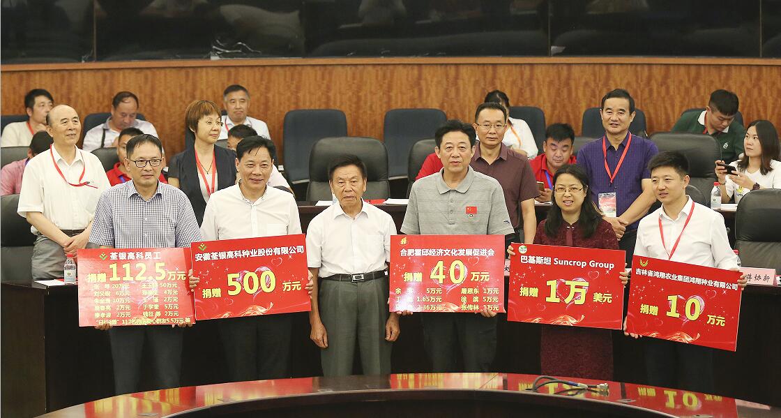 善人者,人亦敬之。張海銀種業(yè)基金會(huì)五年來的公益慈善活動(dòng)得到社會(huì)各界愛心人士和愛心單位600余次的的慷慨捐贈(zèng),累計(jì)950多萬元。會(huì)上還進(jìn)行了基金會(huì)2018年公益愛心捐贈(zèng)儀式。荃銀高科母子公司高管和員工多次參與基金會(huì)濟(jì)困助學(xué)公益慈善活動(dòng),本次捐贈(zèng)112.5萬元;吉林鴻翔種業(yè)集團(tuán)鴻翔種業(yè)有限公司捐贈(zèng)10萬元;巴基斯坦Suncrop Group(陽(yáng)光作物集團(tuán))捐贈(zèng)1萬美元;合肥霍邱經(jīng)濟(jì)文化發(fā)展促進(jìn)會(huì)及會(huì)員為基金會(huì)貧困助學(xué)項(xiàng)目捐贈(zèng)40萬元;安徽荃銀高科種業(yè)股份有限公司捐贈(zèng)500萬元。基金會(huì)將按捐贈(zèng)人捐贈(zèng)的意愿和在業(yè)務(wù)范圍內(nèi)開展公益項(xiàng)目和慈善活動(dòng)。