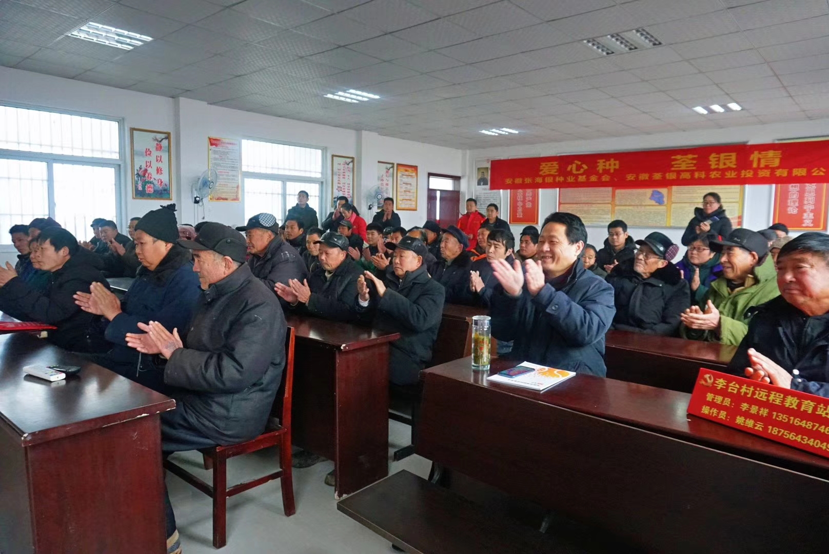 ??? 臘月的古城壽縣,寒風(fēng)凜冽,壽縣迎河鎮(zhèn)李臺(tái)村村委會(huì)的會(huì)議室卻溫暖如春。1月12日,安徽荃銀高科農(nóng)投有限公司攜手安徽張海銀種業(yè)基金會(huì)及壽縣金豐公社有限公司走進(jìn)壽縣迎河鎮(zhèn)開展“穗悅”精準(zhǔn)扶貧項(xiàng)目活動(dòng)。為當(dāng)?shù)?0戶建檔立卡的貧困戶每戶送去優(yōu)質(zhì)水稻種子和化肥。壽縣扶貧辦副主任徐中貴、縣殘聯(lián)副理事長(zhǎng)陳慶華,壽縣迎河鎮(zhèn)黨委書記李景練、副鎮(zhèn)長(zhǎng)戴紹江,基金會(huì)秘書長(zhǎng)張彤、安徽荃銀高科農(nóng)投有限公司總經(jīng)理助理鄭運(yùn)衛(wèi)、金豐公社總經(jīng)理滕玉磊等參加了活動(dòng)。