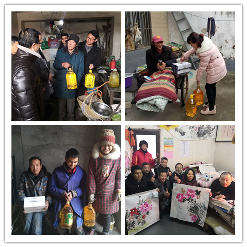 ??? 農(nóng)資捐贈(zèng)活動(dòng)結(jié)束后,荃銀農(nóng)投、基金會(huì)、壽縣金豐公社還為壽縣迎河鎮(zhèn)6戶因病因殘等病困家庭送去生活物品和慰問金。因車禍致殘癱瘓?jiān)诖?4年的韓兵用繩子綁住手,趴在床上的現(xiàn)場(chǎng)作畫,看到他身殘志堅(jiān),樂觀向上的精神,在場(chǎng)的每位人士深受感動(dòng)和由衷欽佩。