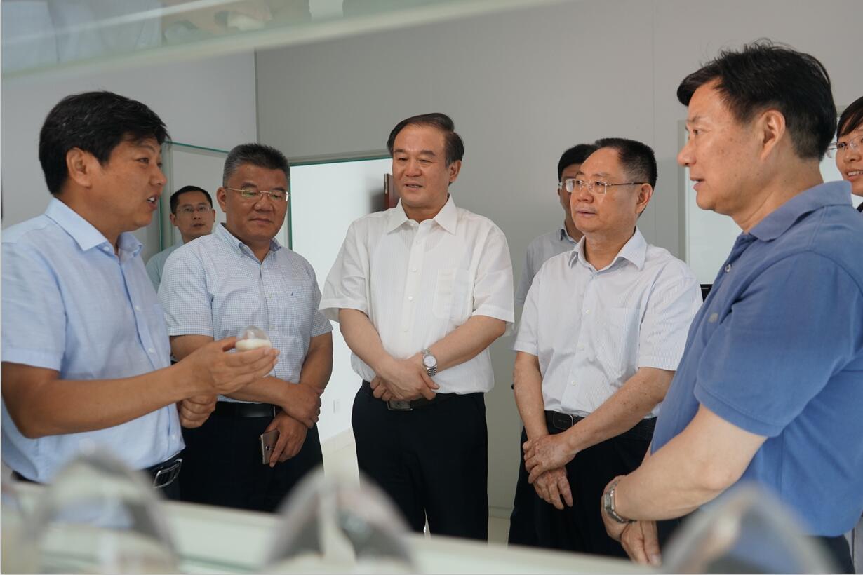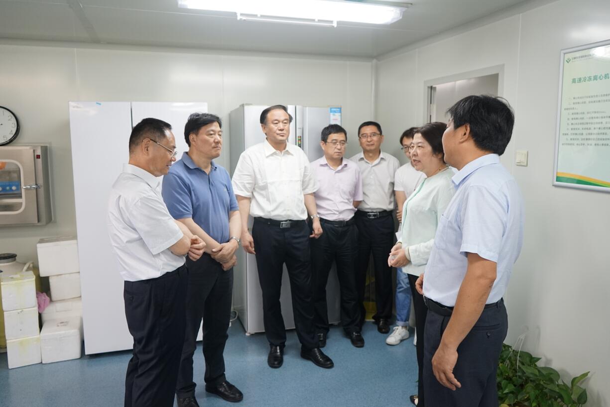 ??? 2019年6月18日上午,上海市政協(xié)常委、市政協(xié)農(nóng)業(yè)和農(nóng)村委員會(huì)主任邵林,上海市政協(xié)常委、農(nóng)業(yè)和農(nóng)村委員會(huì)常務(wù)副主任、市農(nóng)科院黨委書(shū)記、院長(zhǎng)蔡有銘,市政協(xié)常委、市商務(wù)委原副主任、市糧食局原局長(zhǎng)、黨組書(shū)記盞國(guó)平,市農(nóng)業(yè)和農(nóng)村委員會(huì)副主任王國(guó)忠等領(lǐng)導(dǎo)一行蒞臨荃銀高科參觀考察。合肥市政協(xié)主席、黨組書(shū)記韓冰,安徽省政協(xié)農(nóng)業(yè)和農(nóng)村委員會(huì)專職副主任朱云、辦公室調(diào)研員蘇從江,市政協(xié)常委、市政協(xié)農(nóng)業(yè)和農(nóng)村委員會(huì)主任孫功兵等領(lǐng)導(dǎo)陪同考察。荃銀高科副董事長(zhǎng)兼總經(jīng)理張琴、副總經(jīng)理兼首席技術(shù)官?gòu)垙暮系葻崆榻哟丝疾靾F(tuán)一行。