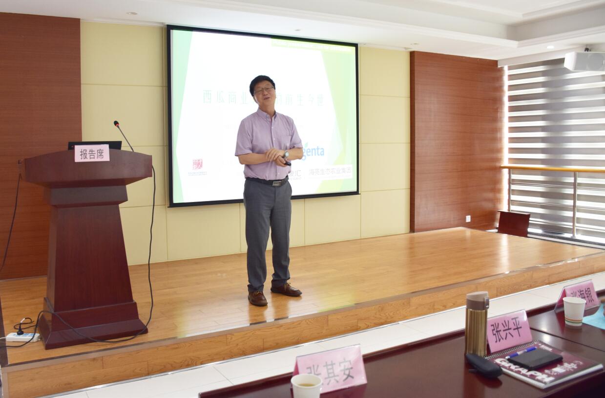 ??? 張興平博士在會上作《國際西甜瓜研究現(xiàn)狀與未來發(fā)展方向的報告》,對西瓜育種前生今世進行介紹,就西甜瓜新品種的選育理念、方法、路徑做了生動的講解。