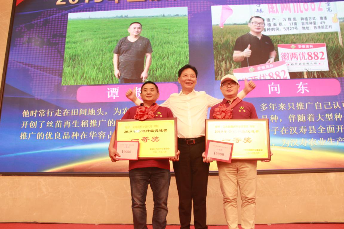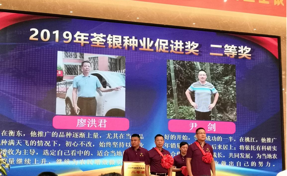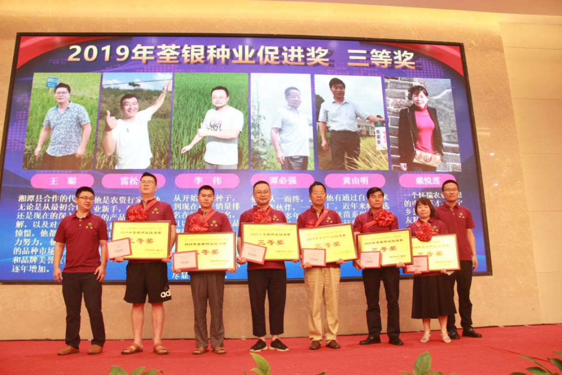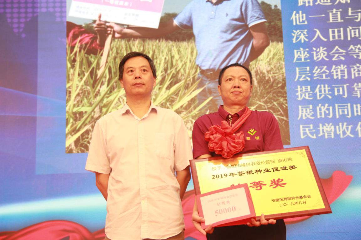 ?? ?隨后,張海銀種業(yè)基金會鄭滿生監(jiān)事宣讀了張海銀種業(yè)基金會“荃銀種業(yè)促進獎”2019年頒獎決定文件。大會向38名在優(yōu)質(zhì)水稻推廣和良種服務(wù)等方面取得優(yōu)異成績的個人頒發(fā)了“荃銀種業(yè)促進獎”專項獎。