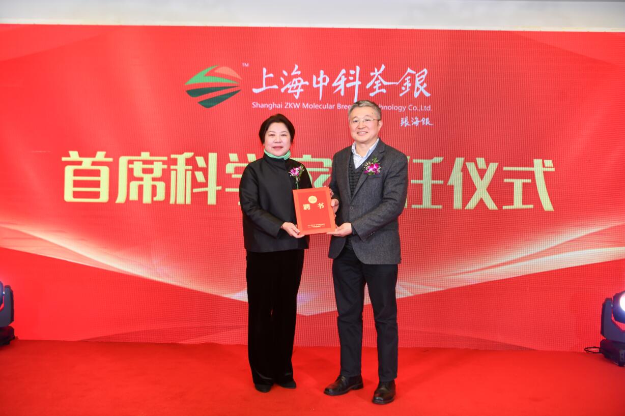 ? ? ?韓斌院士在致辭中首先向關(guān)心支持上海中科荃銀的各位領(lǐng)導(dǎo)、嘉賓表示感謝。他表示,基礎(chǔ)研究與應(yīng)用研究結(jié)合,一定能為育種創(chuàng)新開辟出新路子。上海中科荃銀的成立既有挑戰(zhàn),更是機(jī)遇,上海中科荃銀各團(tuán)隊(duì)將珍惜機(jī)遇,努力為中國種業(yè)技術(shù)創(chuàng)新與技術(shù)進(jìn)步作貢獻(xiàn)!會上舉行了上海中科荃銀首席科學(xué)家聘任儀式,上海中科荃銀董事長張琴女士為韓斌院士頒發(fā)聘任證書。